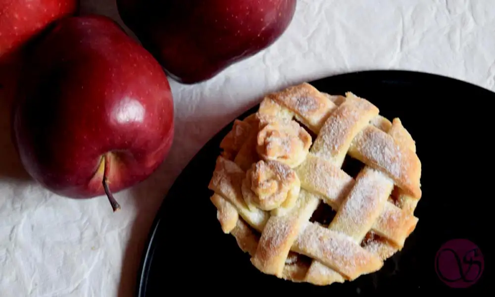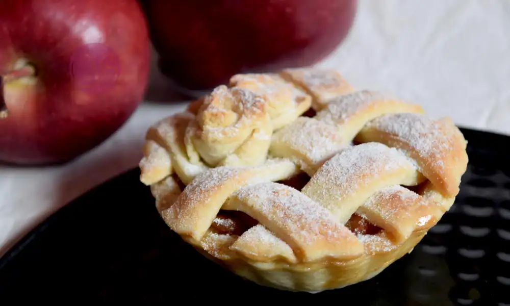 Apple pie is basically a fruit tart that has apple as its main ingredient. Typically, it is served with a dollop of whipped cream or scoop of ice cream. The apple pie crust is a double layered pastry sheet baked with the stuffing of half cooked apples.
