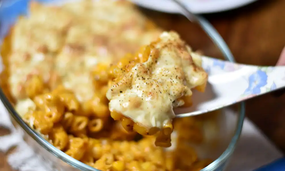 In case you left with some pasta, though chances are rare, then also nothing to worry. Just store it in the refrigerator and before serving it just cover the bowl with aluminum foil and in a preheated oven bake it for 10 minutes on high at 200 °C. It will taste as fresh as you have just prepared it. This trick works well in case you want to serve baked mac and cheese with corn to your guests in the party.