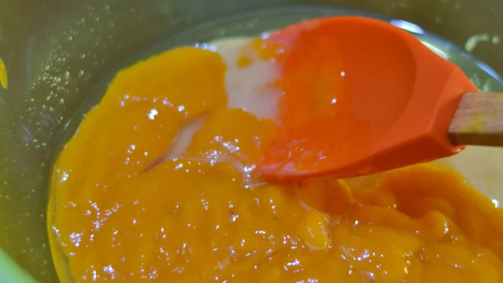 • Blend all the ingredients well into a puree. Ensure the puree is smooth with no crystals of sugar and no chunks of mangoes remaining.