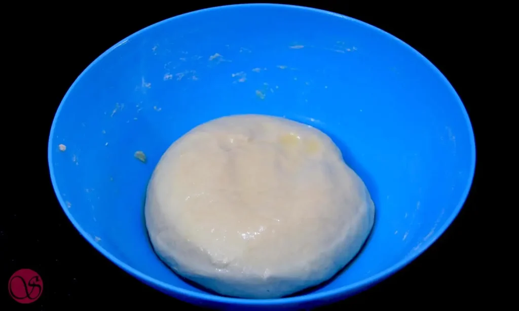 After 10 minutes of kneading, you will get a non-sticky, soft and elastic dough. Place this dough in a greased bowl and cover it with cling wrap. Let the dough rest until it doubles in Volume.