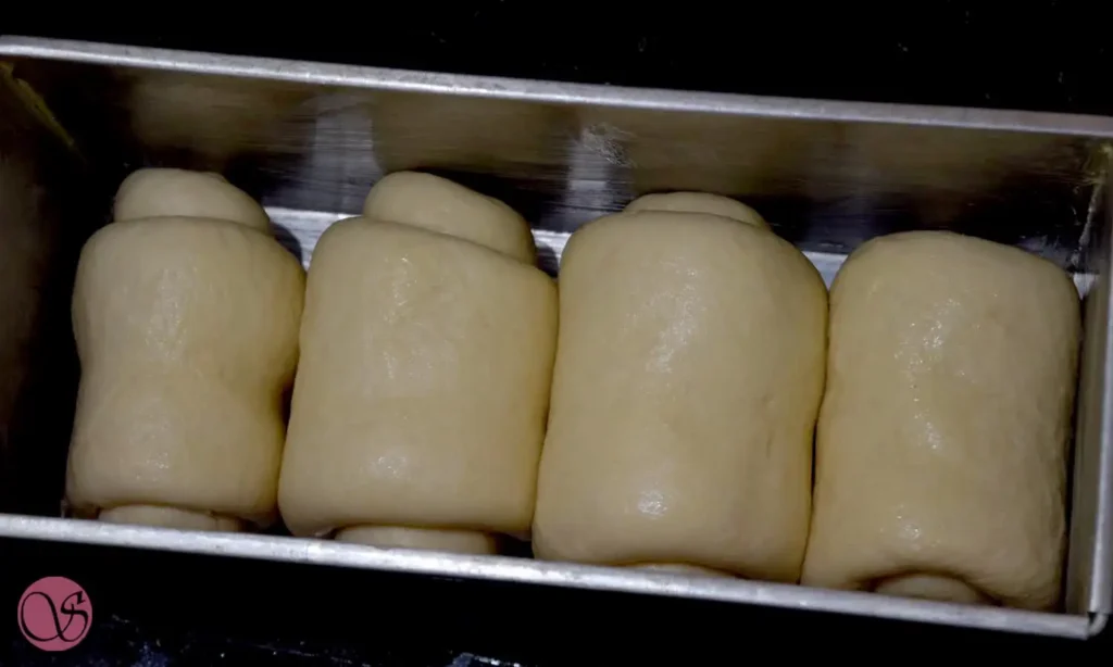 - Similarly shape all the dough portions and arrange all these in a greased loaf pan.