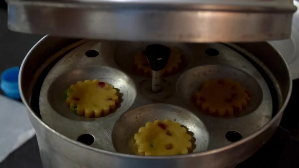 Place these cookies on idli plates and place the idli stand inside idli maker. Close the lid and let the cookies bake on slow to medium flame.