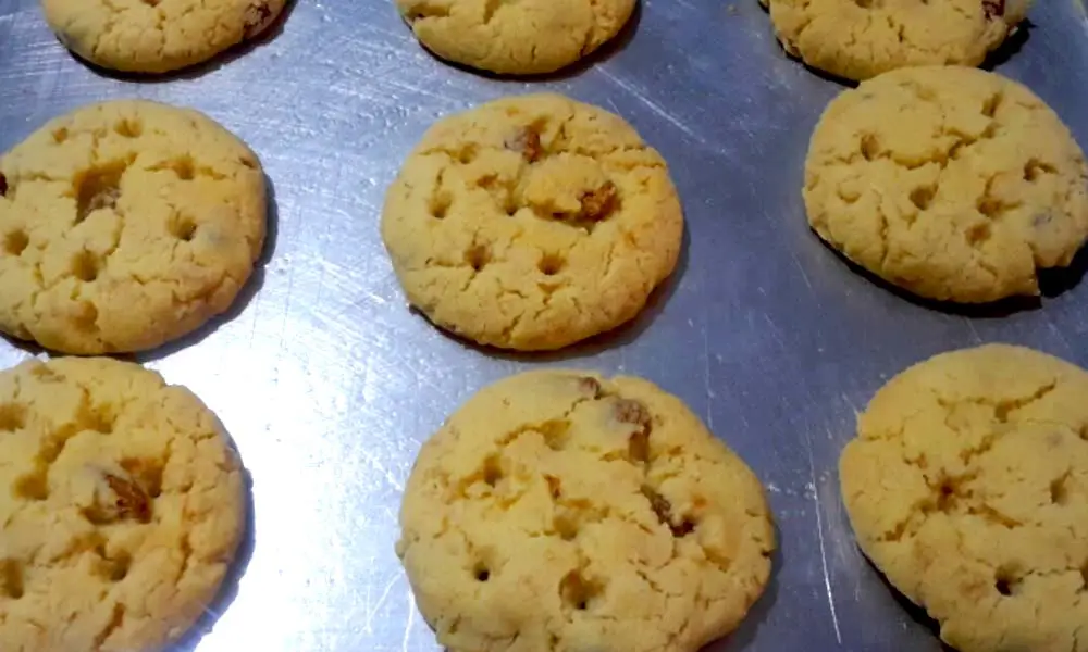 Allow cooling before serving. Gulab Jamun cookies with oats and raisins are ready.