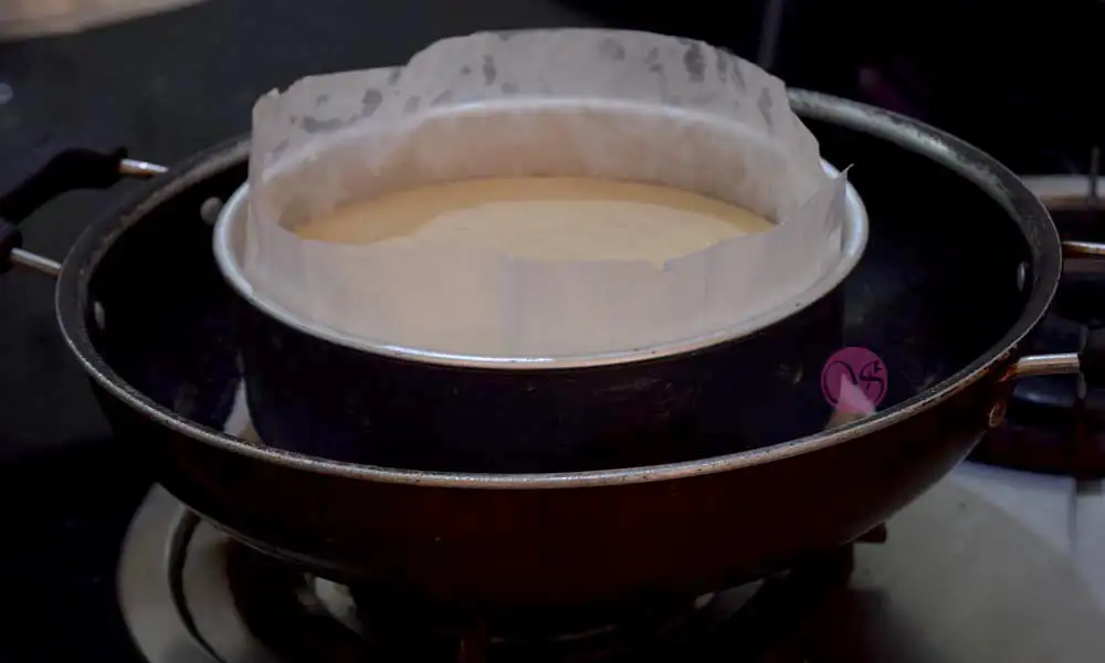 Let it bake on a medium flame for about 40 minutes or until it passes the toothpick test.