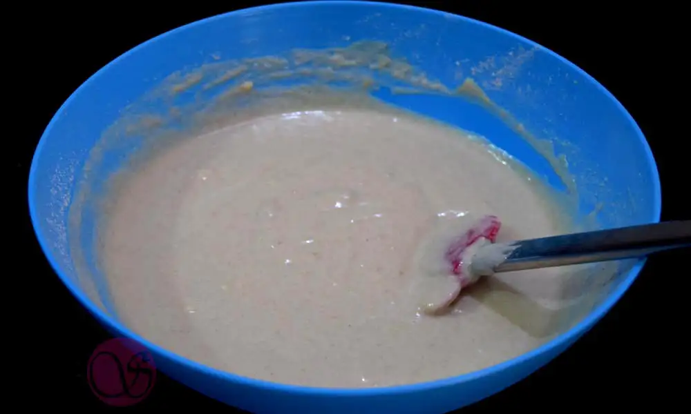 - Using a spatula, fold all the dry ingredients into wet ingredients. Add milk solution to the batter and make a smooth batter.