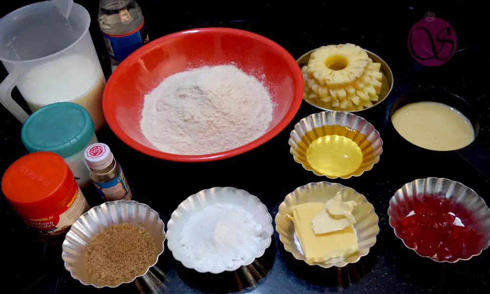 I have used all common ingredients, generally available in all types of kitchen. You can make this easy pineapple cake at home at the time of your choice. Print the recipe card, stick it on your refrigerator and let’s get started.