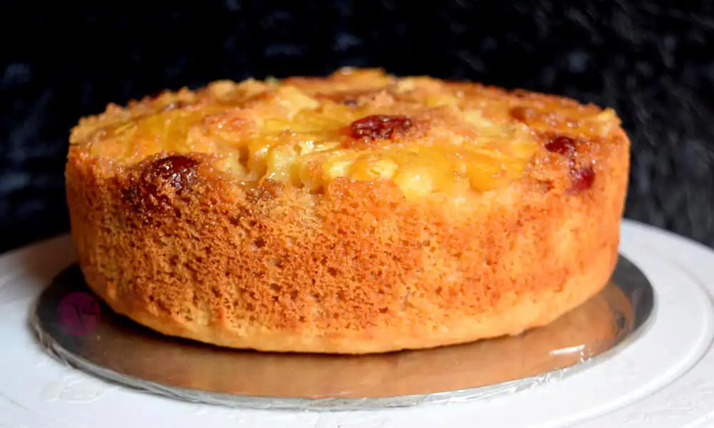 - Demould the cake. Remove the parchment paper. Your Pineapple upside down cake with healthy twist is ready to serve.