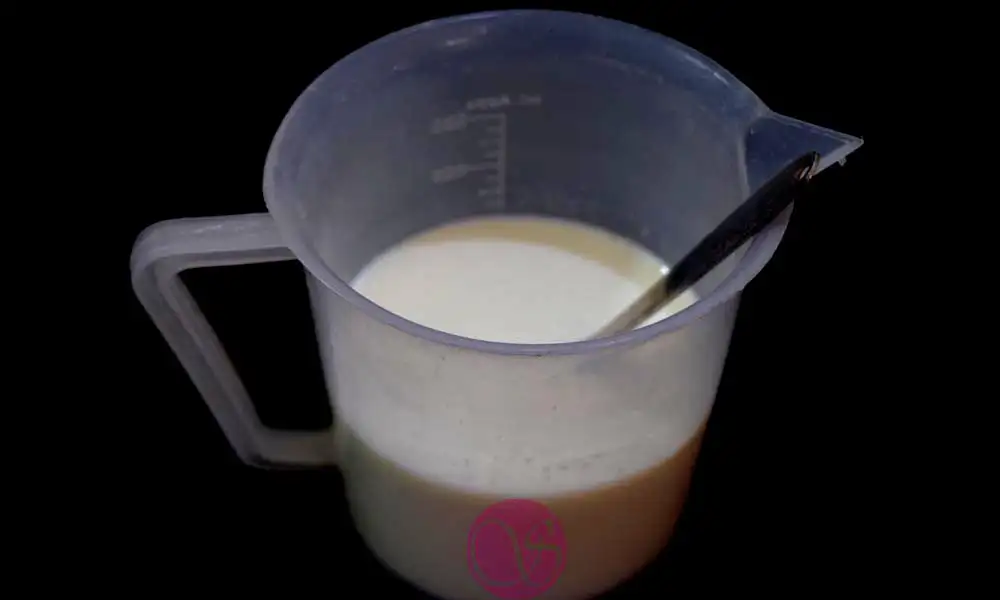 - Mix milk, vanilla essence and vinegar in a mixing jar and keep it aside.