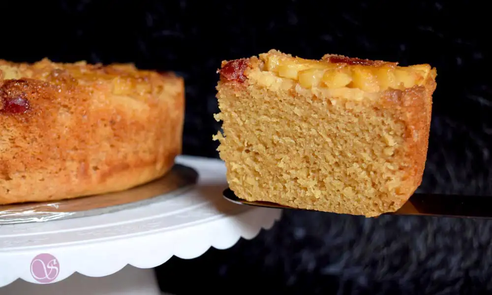 The caramelized sugar and buttery pineapple will create a brown-sugared juicy topping on top of the cake. The cake looks gorgeous when you flip it upside down.