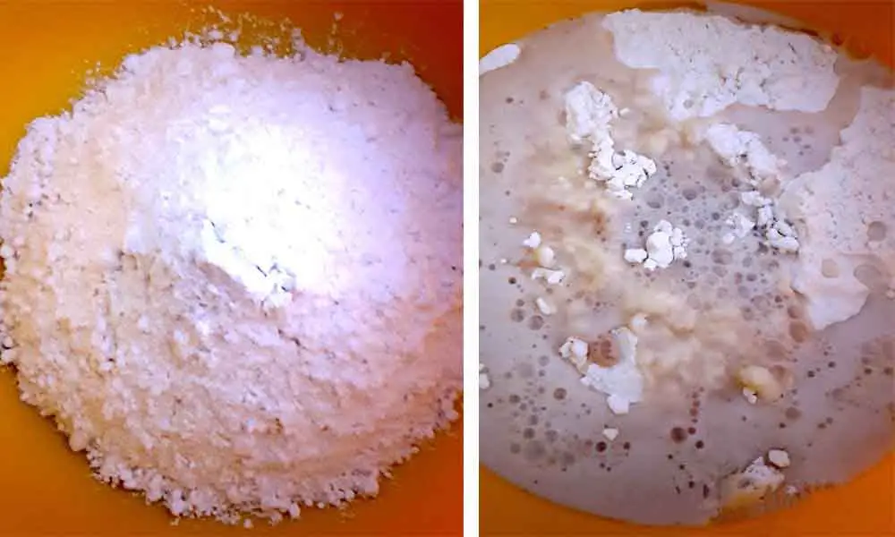Take a fresh bowl of a large size. Add all purpose flour and salt. Add the activated yeast to the flour and mix it well.