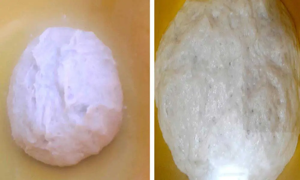 Place the dough into a greased pan and cover it with a cling wrap or Kitchen towel. Keep this pan in some warm place until the dough doubles in Volume.