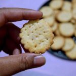 Bake these crackers in preheated oven at 150 °C for 15 min or until the edges turn golden.